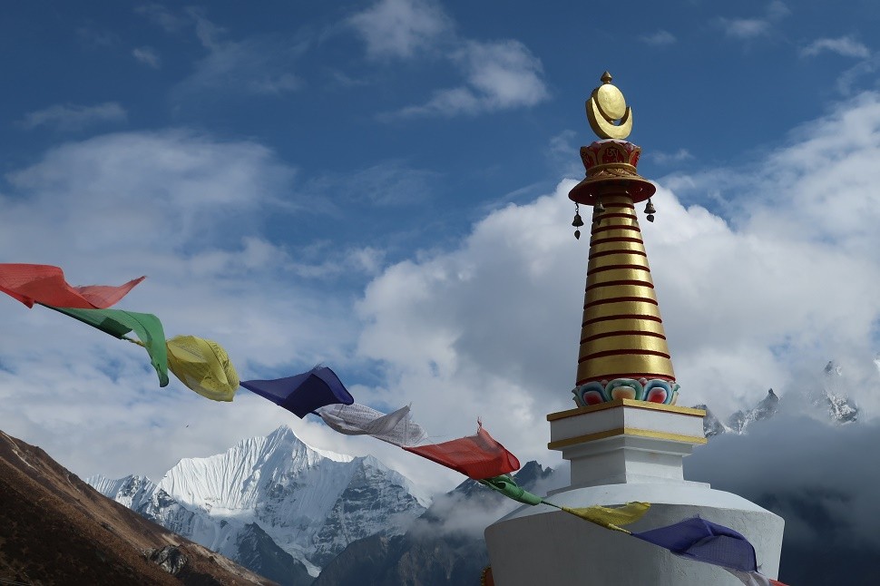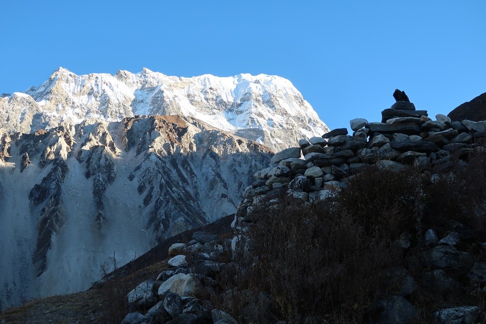 Enjoy brilliant morning views of the peaks, including Langtang Lirung (7,227 m), Dorje Lakpa (6,966 m) and Yala Peak (5,520 m), on a December Langtang Valley trek.