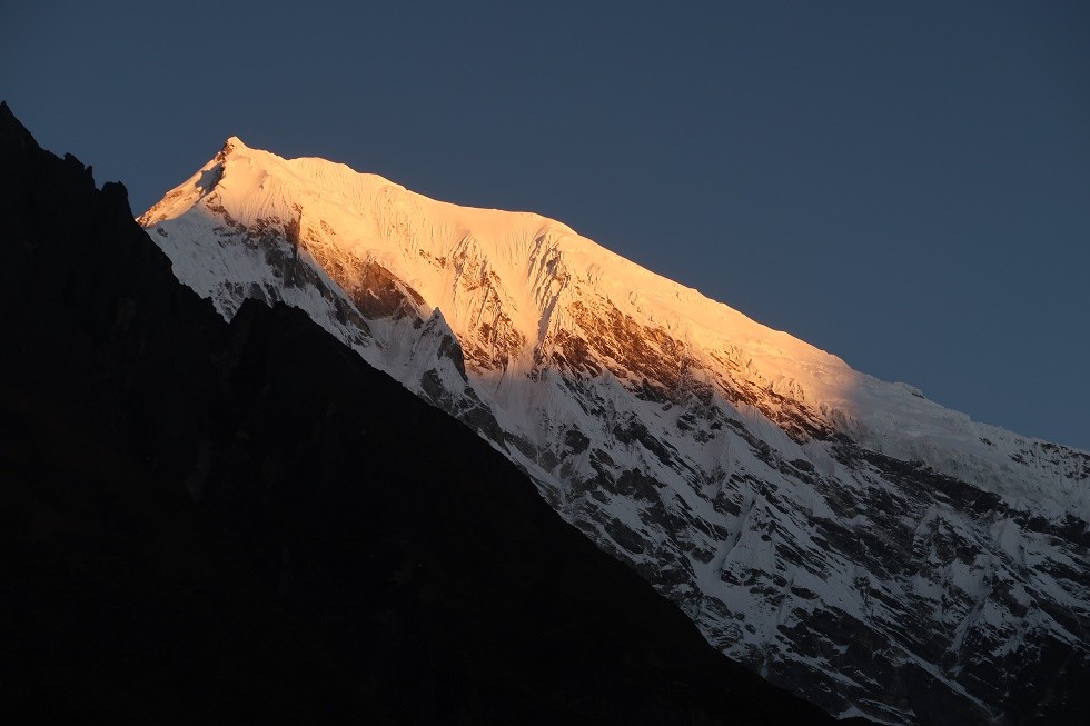Likewise, this winter setting also brings a sense of stillness that the busier trekking seasons rarely afford. The cold air is clean, the skies clear, and the early morning and late afternoon light makes peaks like Langtang Lirung (7,227 m) and its neighbors particularly dramatic, each contour crisp in icy relief. The frost crunched beneath foot and the shifting sunlight colored the mountains from alabaster to gold. Moreover, the cultural life of the Tamang and Brāhmin communities along the trail feels more intimate when there are fewer trekkers, which makes every interaction so much more meaningful.
