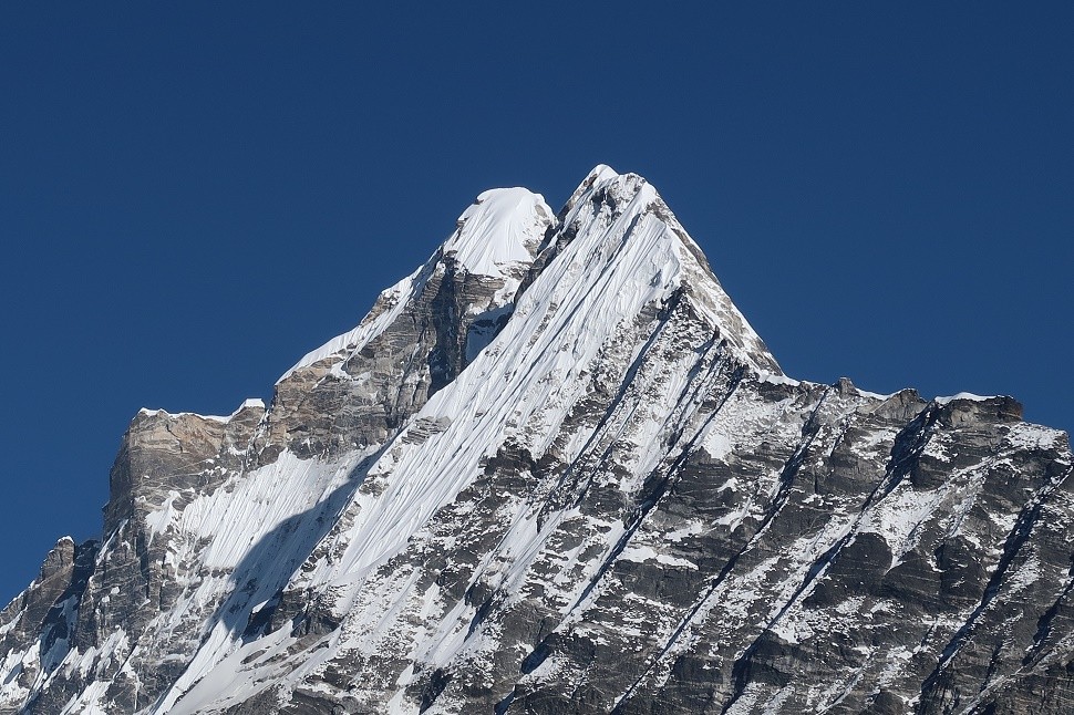 Furthermore, December offers some of the most spectacular mountain vistas on the Langtang Valley trek thanks to the clear skies and crisp air. On a clear winter morning, the summit of Langtang Lirung (7,227 m) towers dramatically above the valley floor, its snow-covered ridges reflecting the pale dawn light. Meanwhile, a little south-east of this massive peak rises Dorje Lakpa (6,966 m), its pyramidal peak sharply etched against the blue sky, vivid in winter's low humidity.