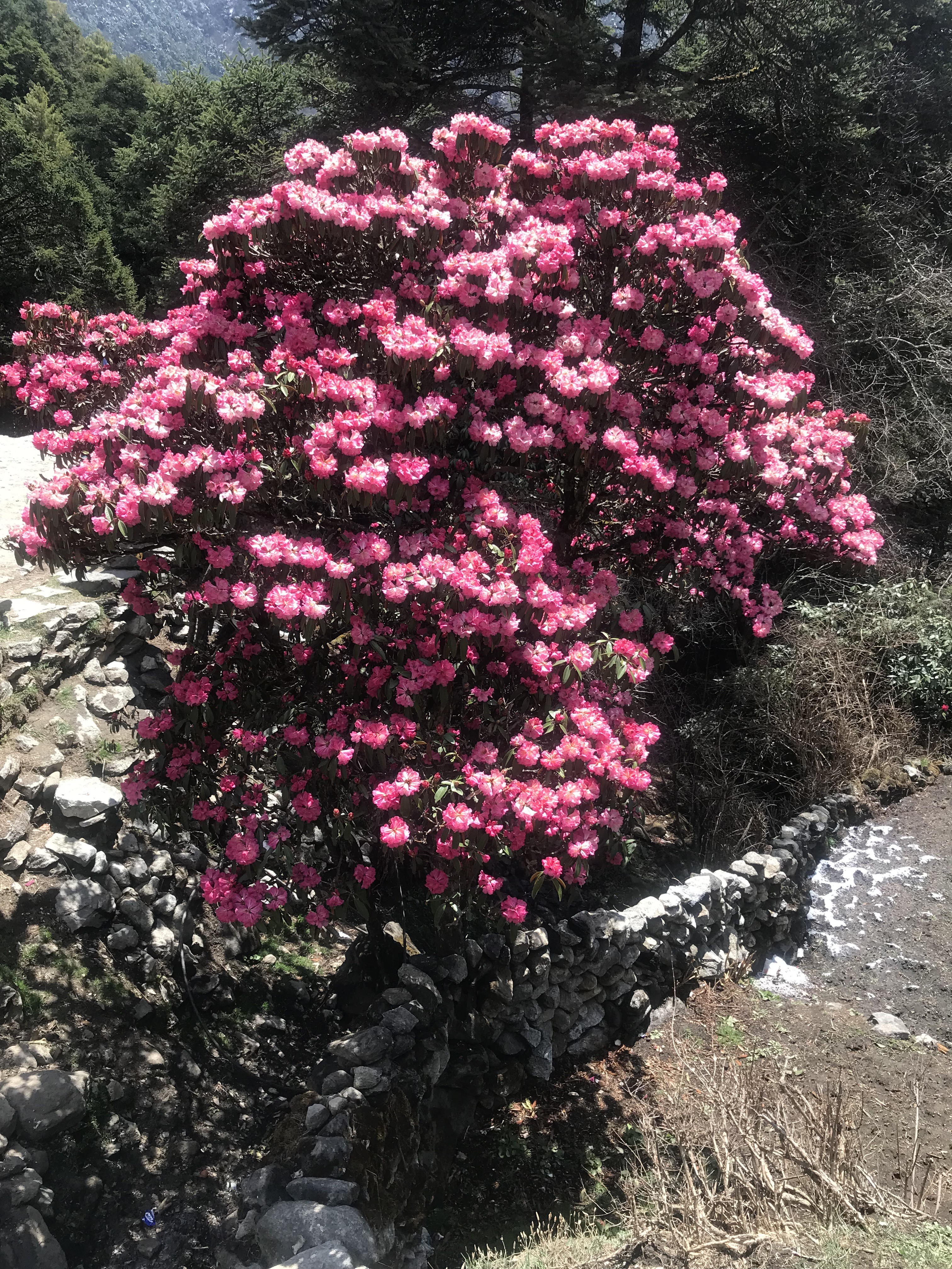 Rhododendron: BloomsVibrant spring flowers in red and pink, enhancing visual appeal in Nepal trekking.Rhododendron blooms, spring flowers, Nepal trekking