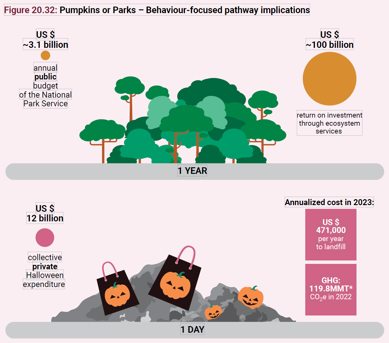 The GEO7 report with more than 1000 pages includes many illustrations, e.g. for nature based solutions or behaviour focused pathway implications