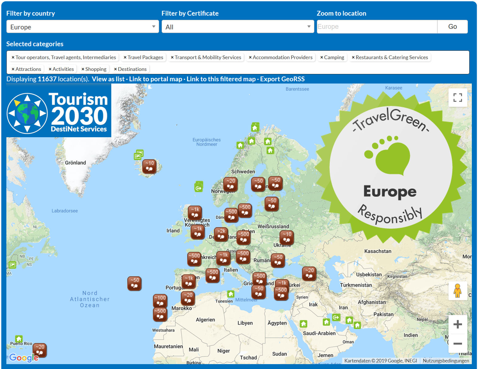 *) Travel Green Planet Maps to boost Sustainable Tourism certification With the Tourism2030 - Travel Green Planet maps the European network for sustainable tourism development ECOTRANS provides global transparency on green certification programmes and gives visibility to certified tourism worldwide. Certification bodies are invited to use this service for free. |