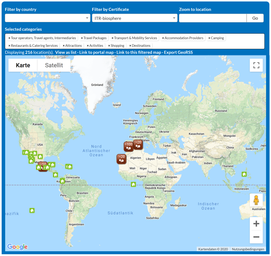 Biosphere Sustainable uses the Tourism2030 DestiNet Services to show the locations of its certified businesses and destinations on the map and to facilitate their market access to the global market.